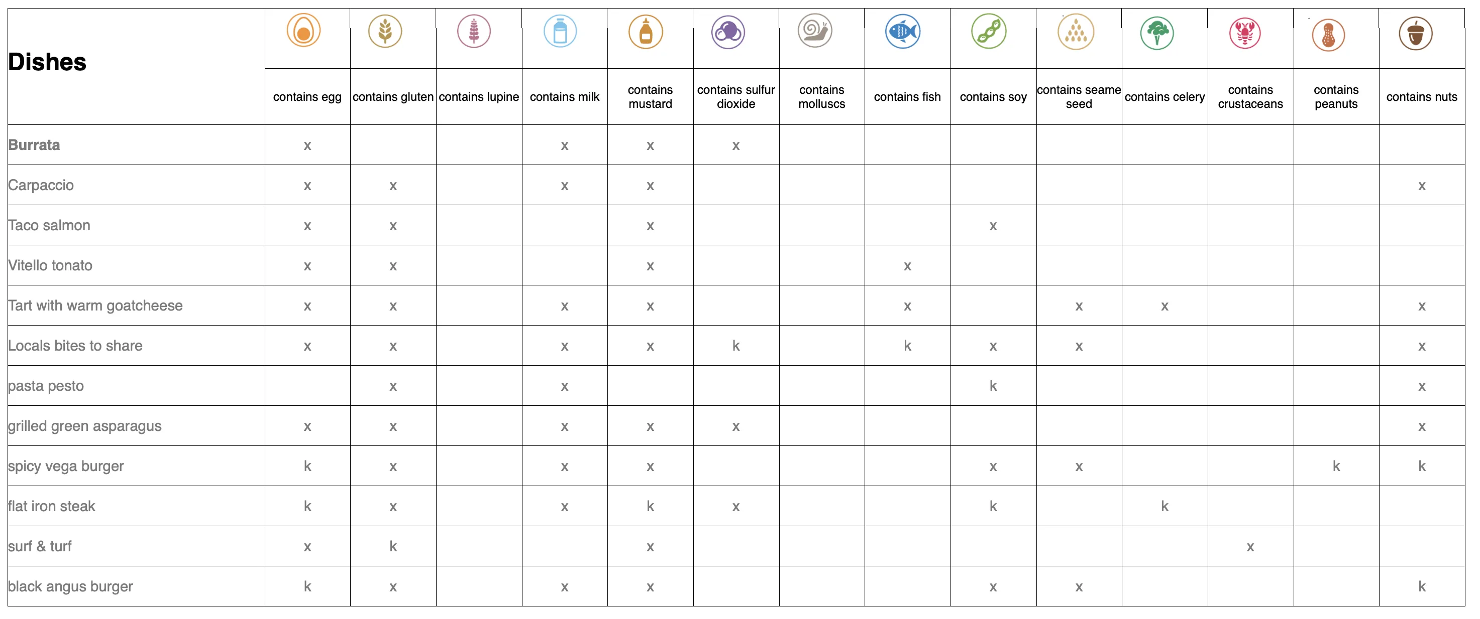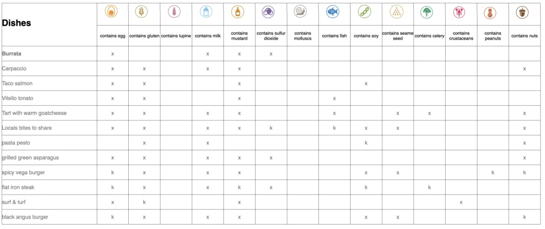 At Locals Grand Café, it’s all about enjoying good food in a relaxed and welcoming atmosphere. Whether you're here for lunch, drinks with friends, or just a great cup of coffee – we want everyone to feel safe and at home. That’s why we offer a clear overview of the allergens present in our dishes.
